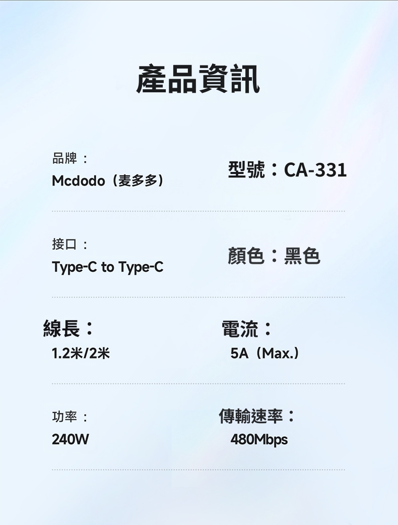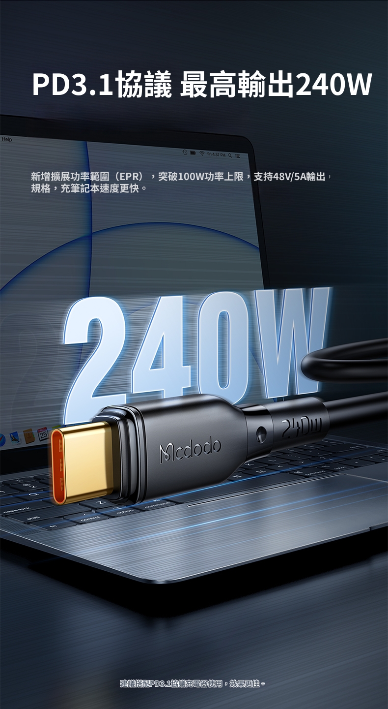 / 240W鍍金PD3.1高速充電數據線 180公分