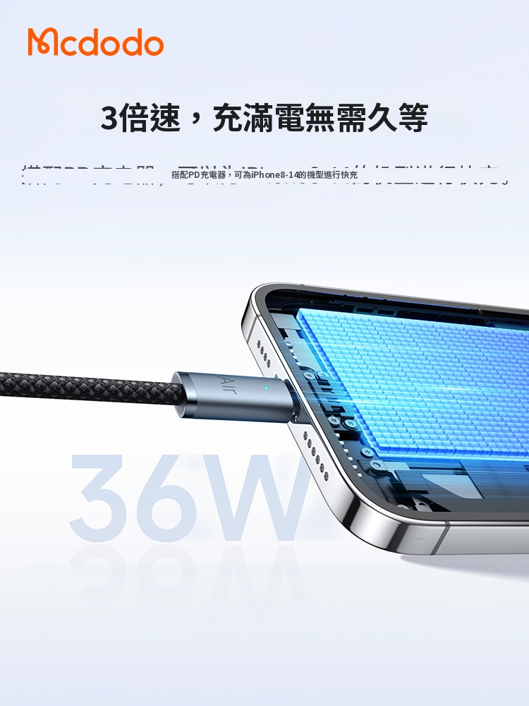 CabLuma系列 C TO L 36W 高速充電數據線 180公分