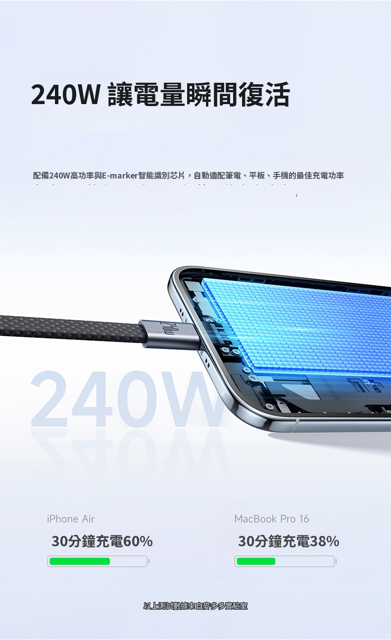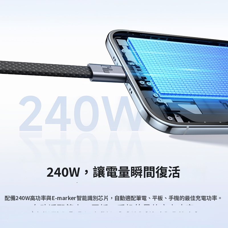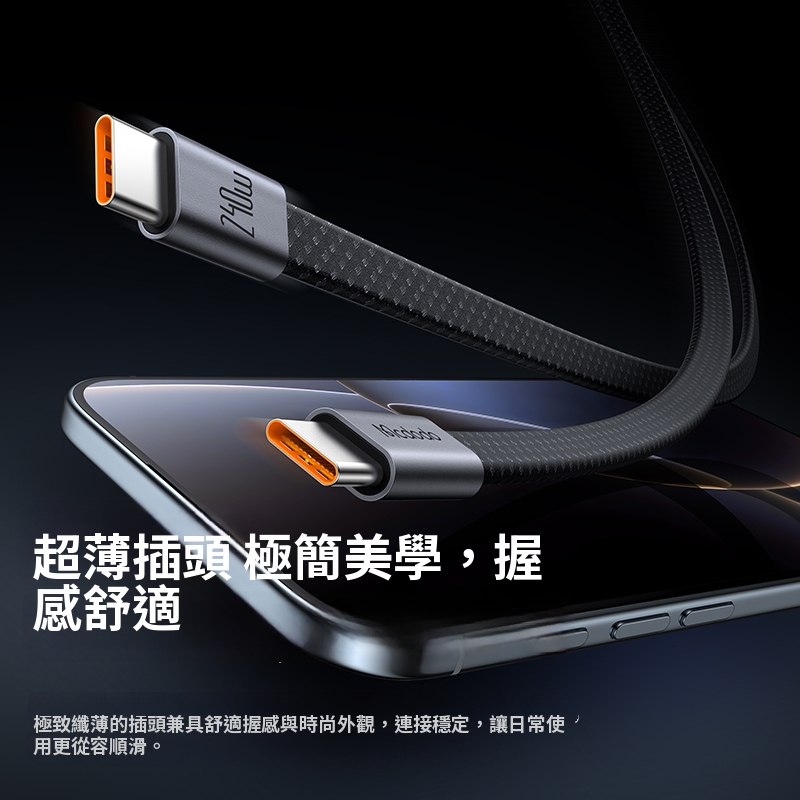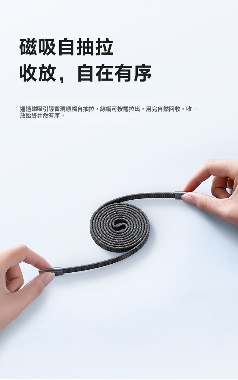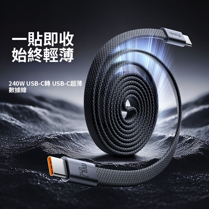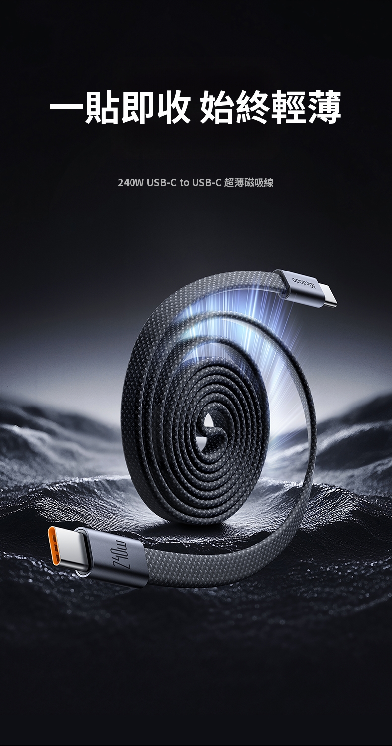 / CabMage系列 超薄磁吸C To C 240W收納數據充電線 100公分