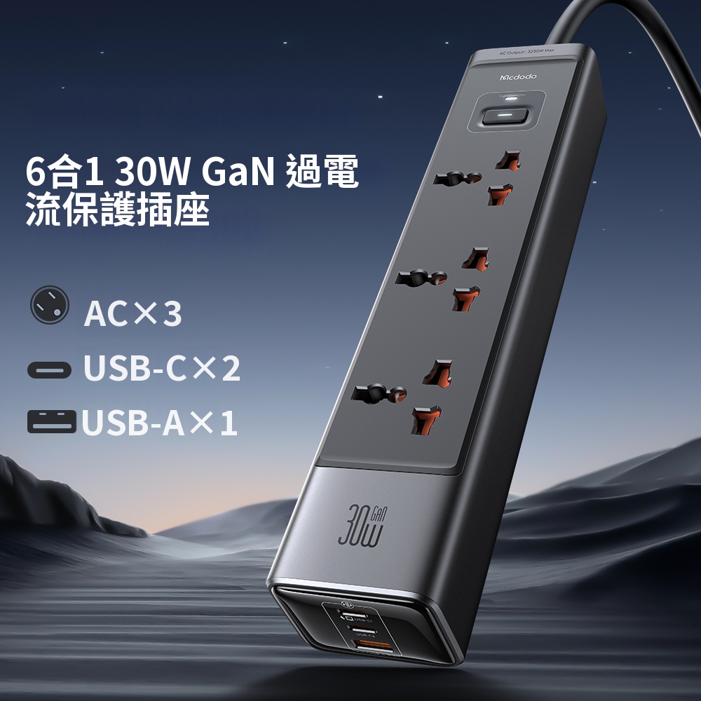 極電立方系列 三孔快充延長充電器GaN 2C1A 30W萬能插孔 數量
