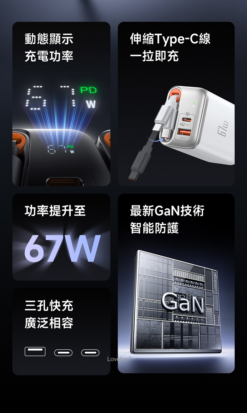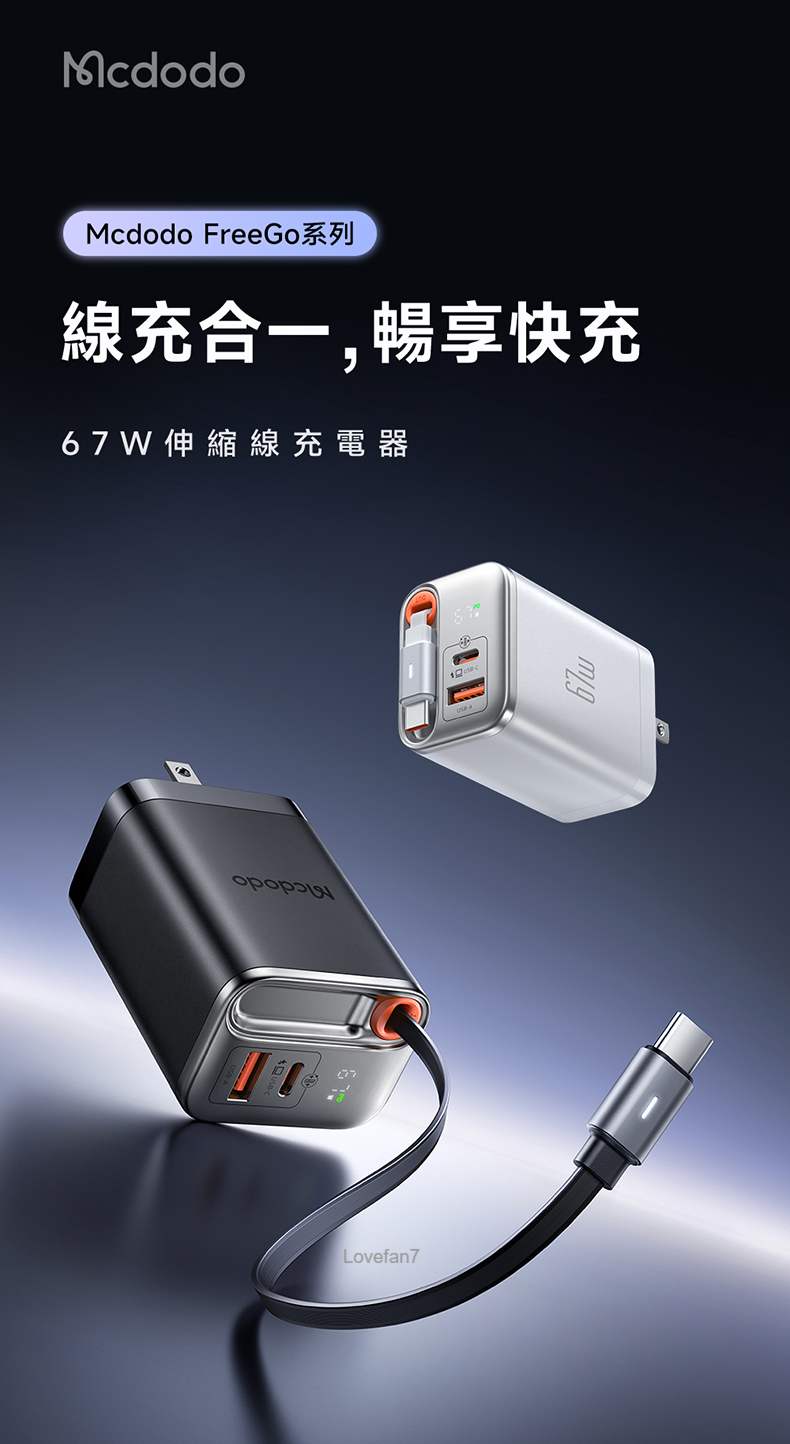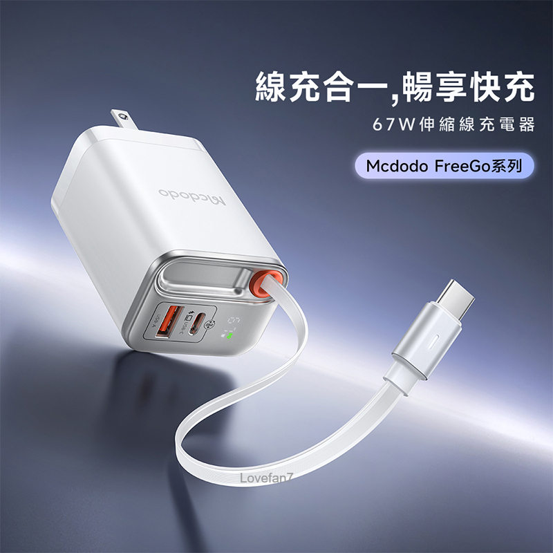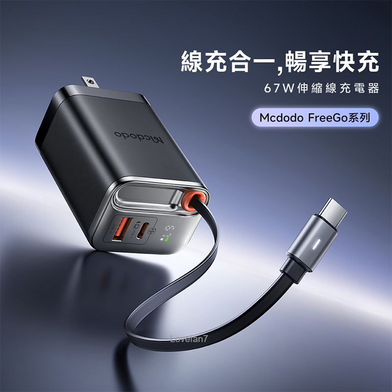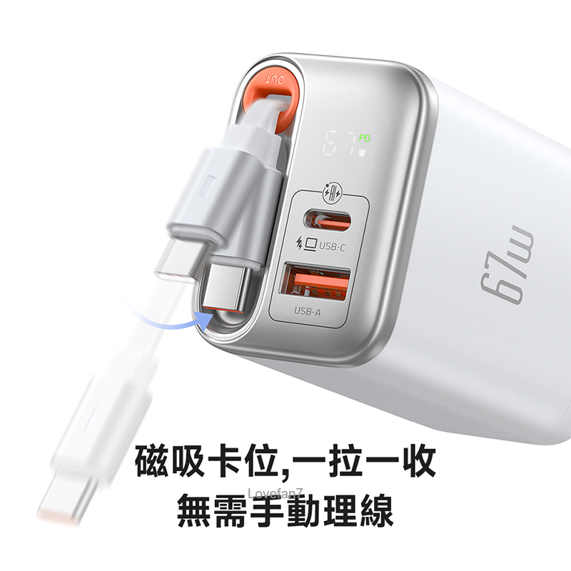 / 67W 氮化鎵伸縮線雙孔充電器 (帶65公分60W伸縮快充線)