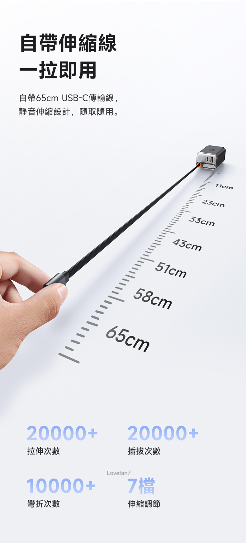 67W 氮化鎵伸縮線雙孔充電器 (帶65公分60W伸縮快充線) 數量
