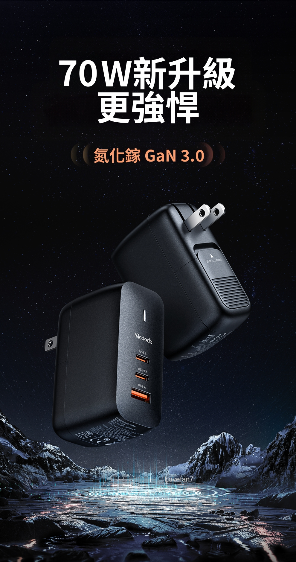70W 氮化鎵mini快充充電器 (全球通用套裝組)